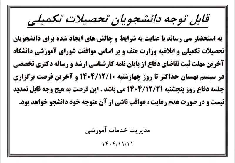 اطلاعیه مهلت ثبت تقاضای دفاع از پایاننامه کارشناسی ارشد و رساله دکتری تخصصی دانشگاه قم
