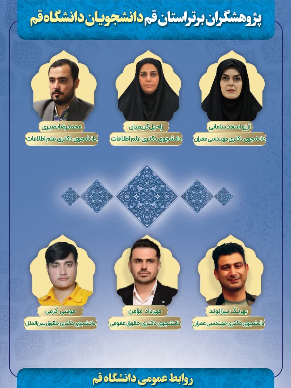پژوهشگران برتر استان قم از بین دانشجویان دانشگاه قم